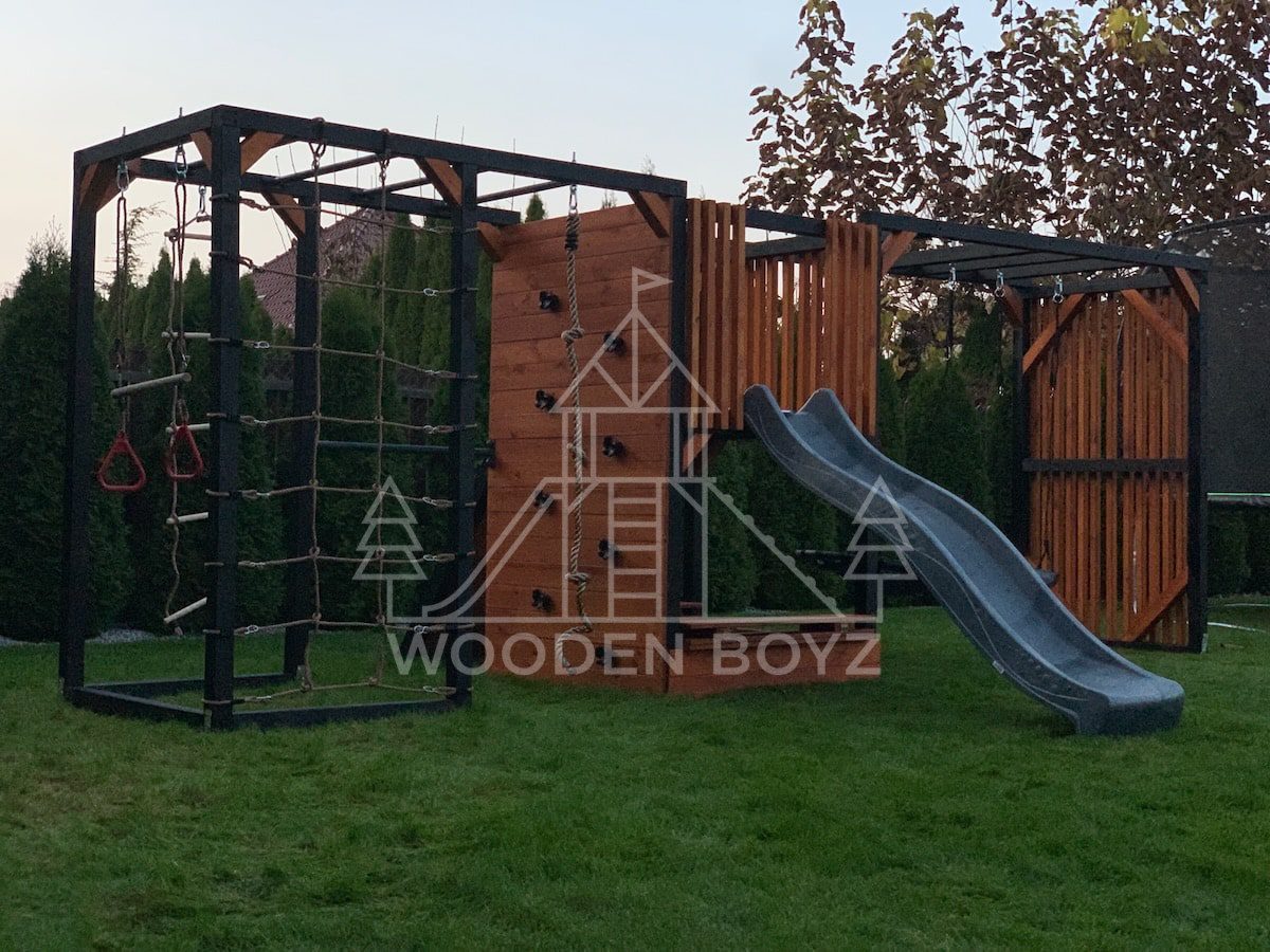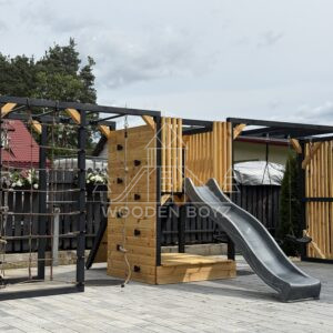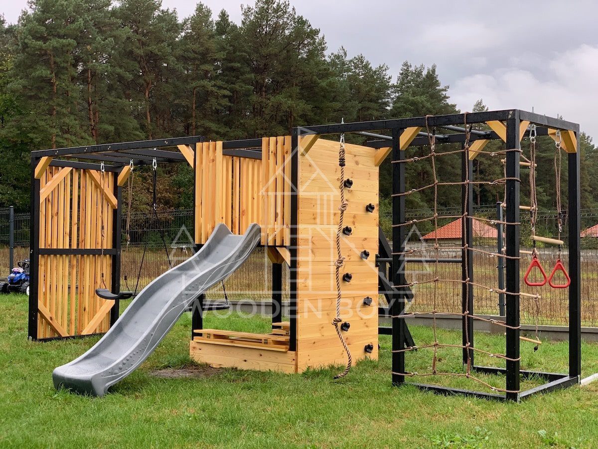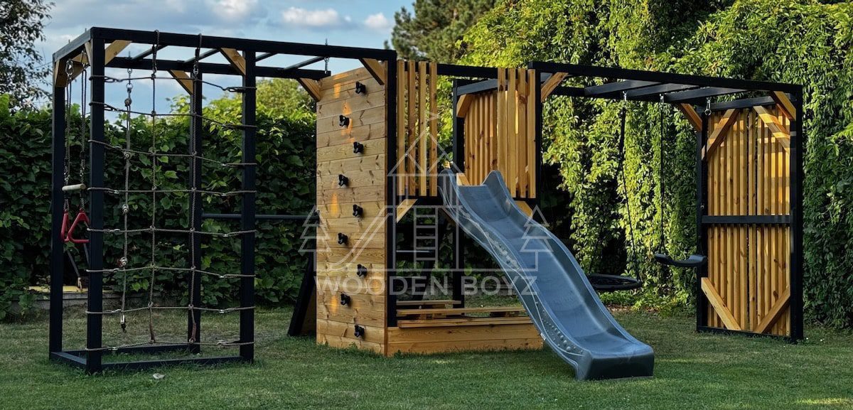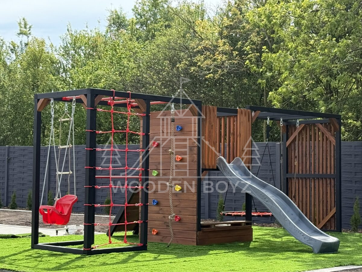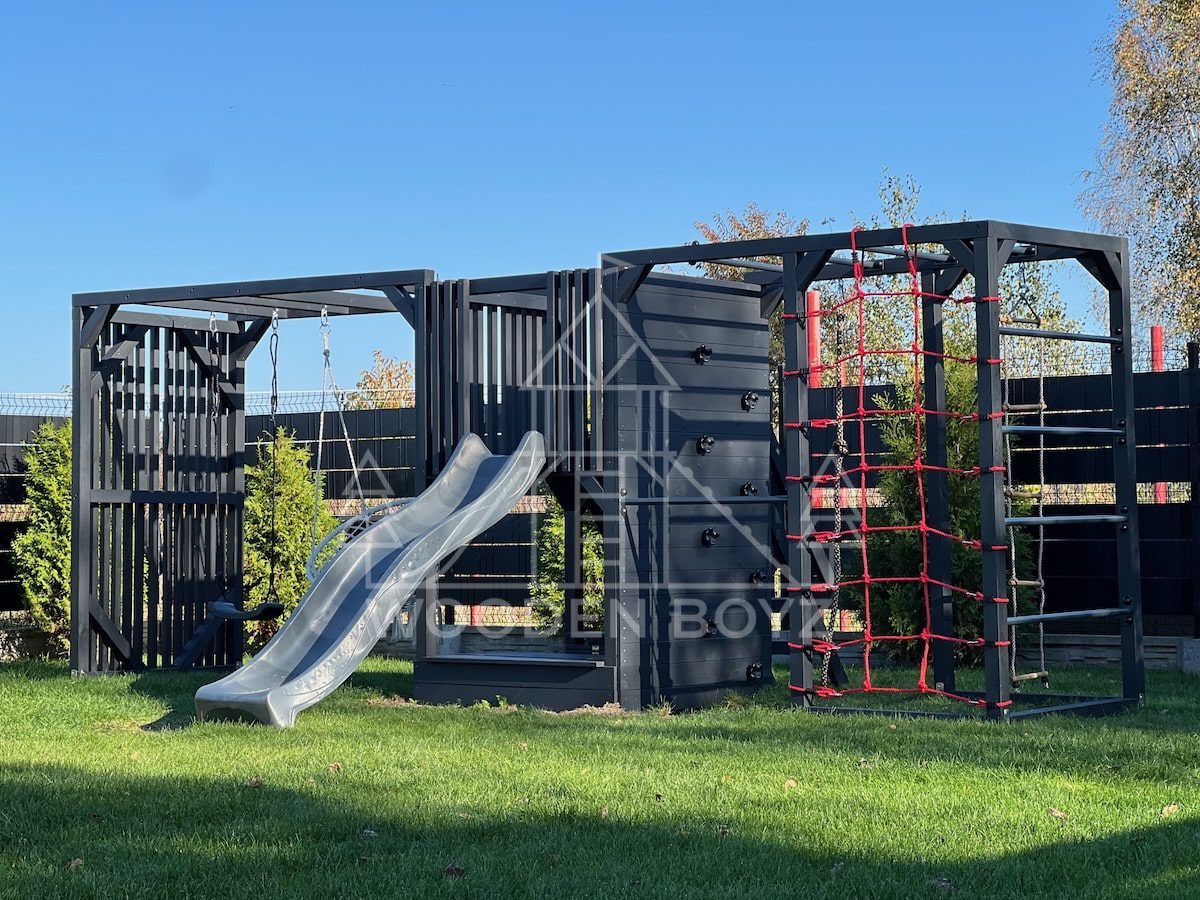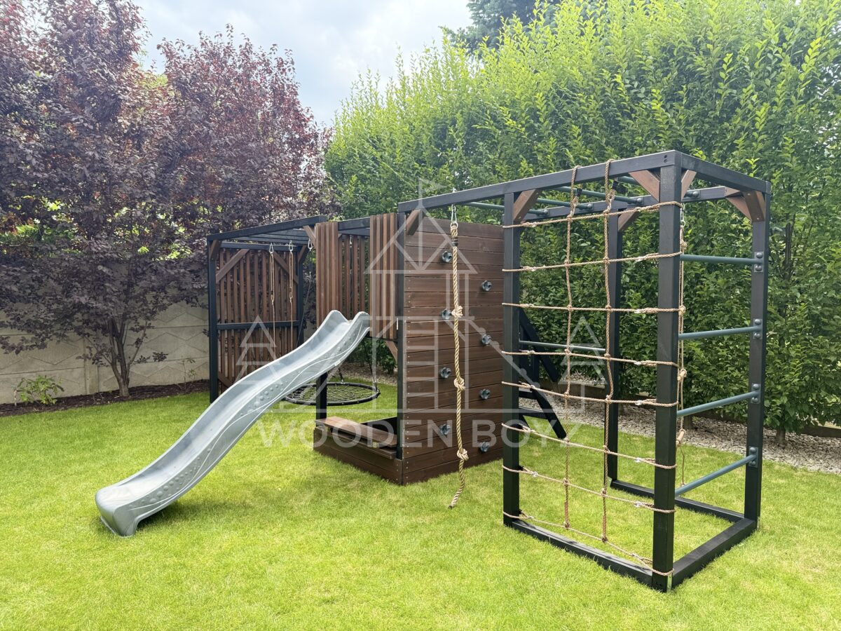 Pola je všestranné hřiště, které dětem nabízí aktivní a kreativní zábavu. Je vybaveno tyčemi, lezeckou sítí, skluzavkou, pískovištěm a různými houpačkami a zaručuje hodiny skvělé zábavy v naprostém bezpečí.Hřiště Pola je komplexní sada, která dětem poskytuje vše, co potřebují pro aktivní a kreativní hraní. Ideálně se hodí do každé zahrady a poskytuje hodiny plné radosti a úsměvů na čerstvém vzduchu.„Pola” je jedinečné hřiště, které kombinuje vše, co aktivní děti potřebují pro šťastnou zábavu na čerstvém vzduchu. Navrženo s vášní rodinnou firmou WoodenBoyz.pl, nabízí komplexní řešení pro rodiny, které si cení bezpečné a rozvojové zábavy. Konstrukce vyrobená z certifikovaného borovicového dřeva C24 zaujme nejen svou funkčností, ale také estetickým vzhledem, který se perfektně hodí do každé zahrady.