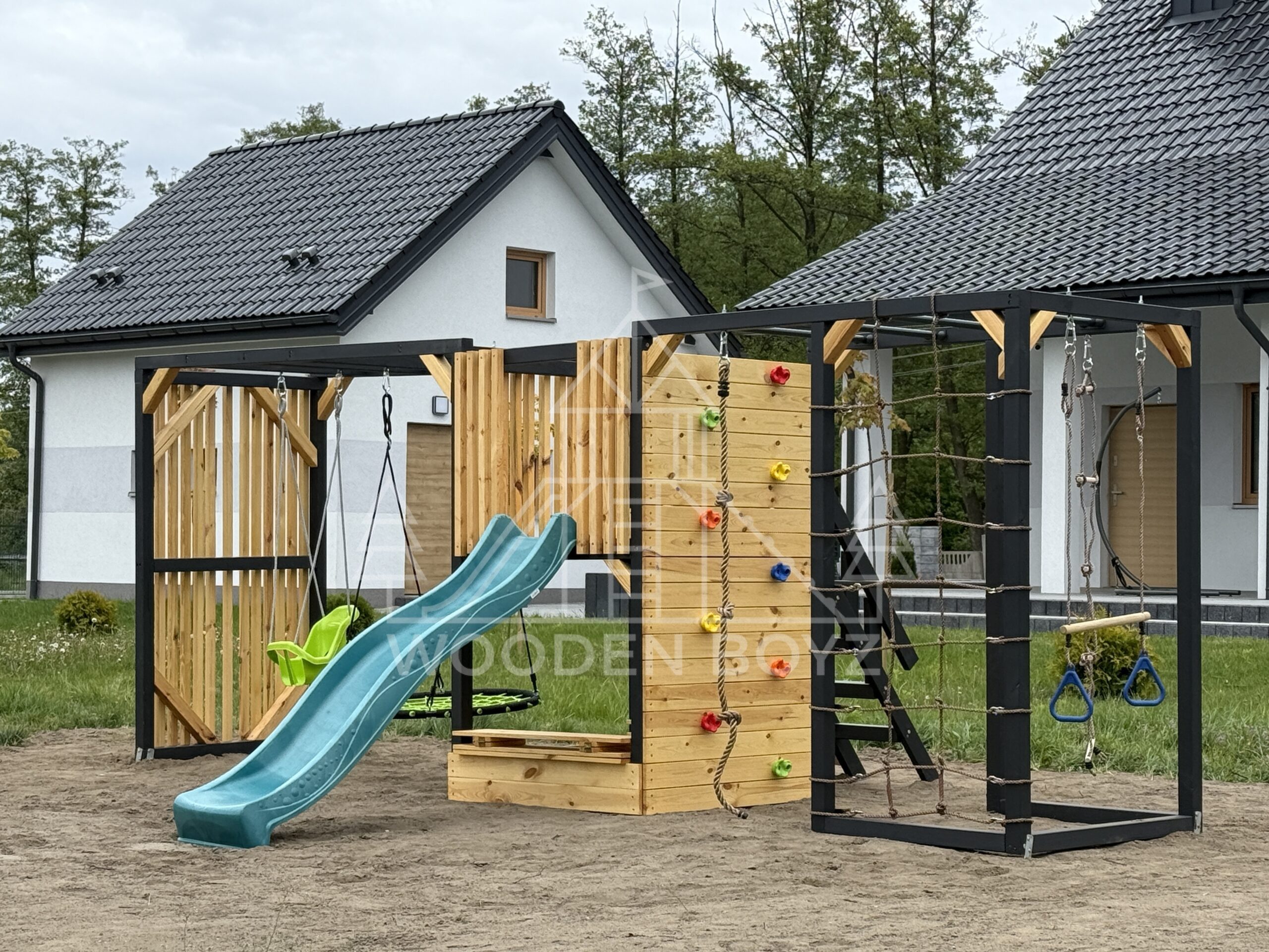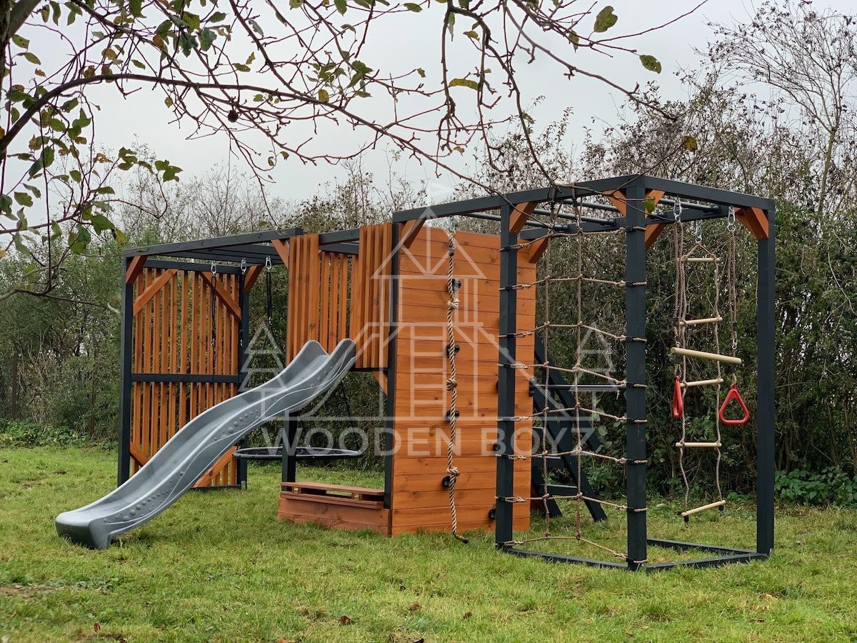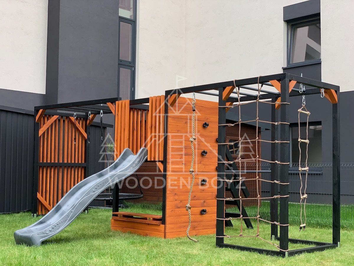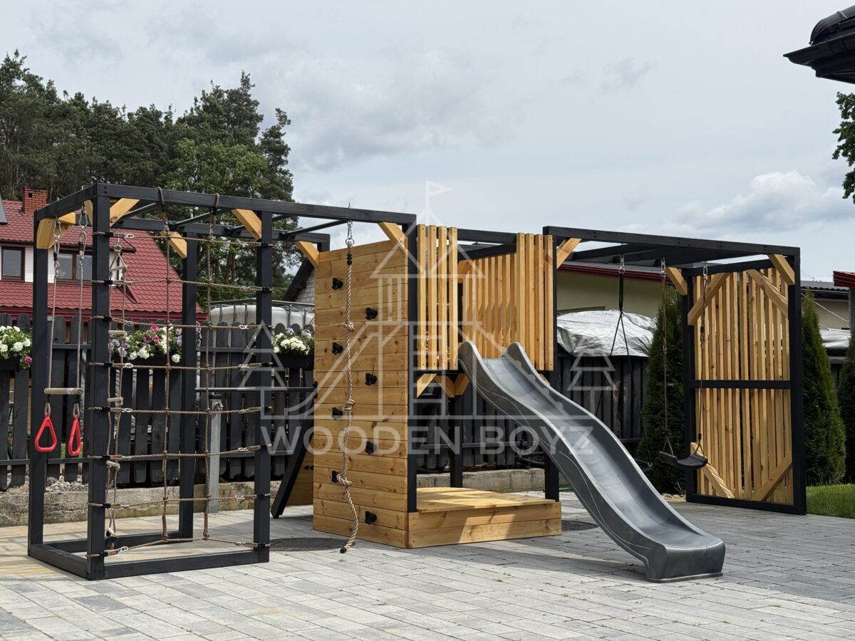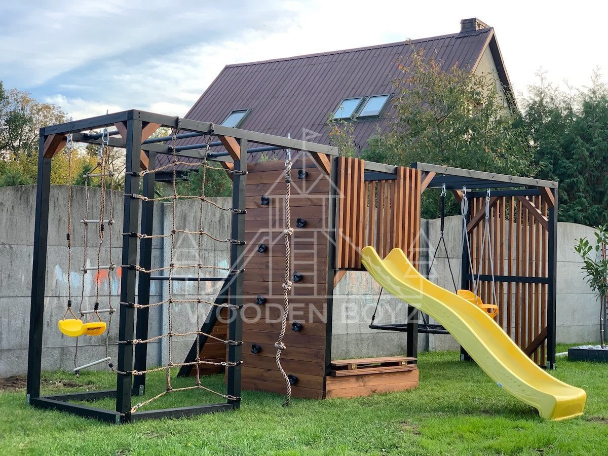 Pola je všestranné hřiště, které dětem nabízí aktivní a kreativní zábavu. Je vybaveno tyčemi, lezeckou sítí, skluzavkou, pískovištěm a různými houpačkami a zaručuje hodiny skvělé zábavy v naprostém bezpečí.Hřiště Pola je komplexní sada, která dětem poskytuje vše, co potřebují pro aktivní a kreativní hraní. Ideálně se hodí do každé zahrady a poskytuje hodiny plné radosti a úsměvů na čerstvém vzduchu.„Pola” je jedinečné hřiště, které kombinuje vše, co aktivní děti potřebují pro šťastnou zábavu na čerstvém vzduchu. Navrženo s vášní rodinnou firmou WoodenBoyz.pl, nabízí komplexní řešení pro rodiny, které si cení bezpečné a rozvojové zábavy. Konstrukce vyrobená z certifikovaného borovicového dřeva C24 zaujme nejen svou funkčností, ale také estetickým vzhledem, který se perfektně hodí do každé zahrady.