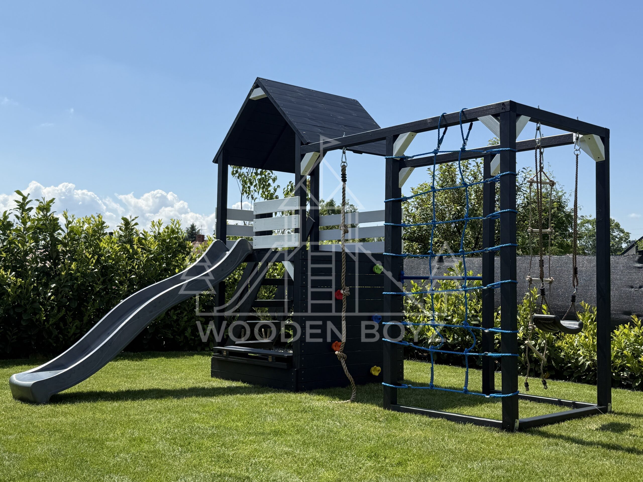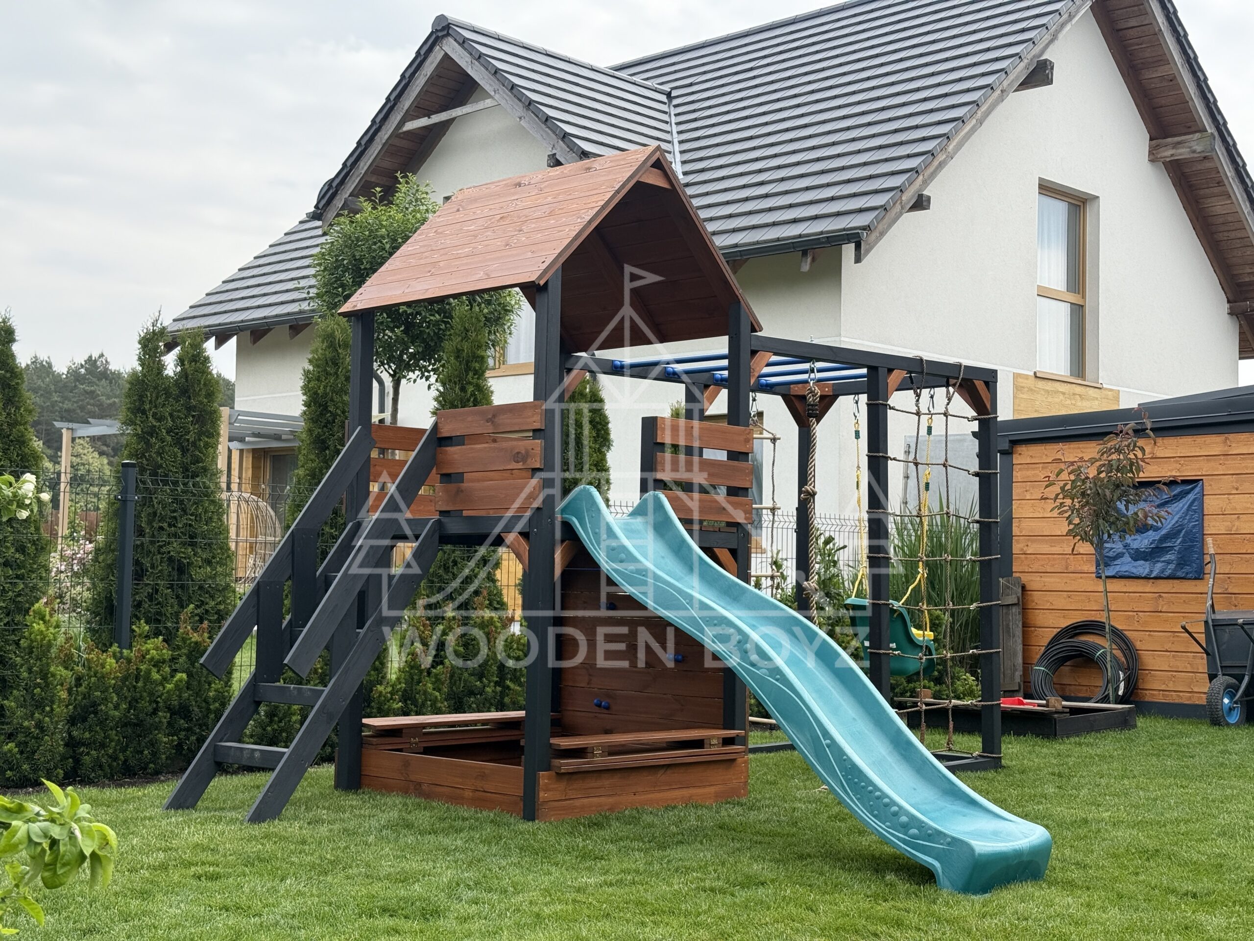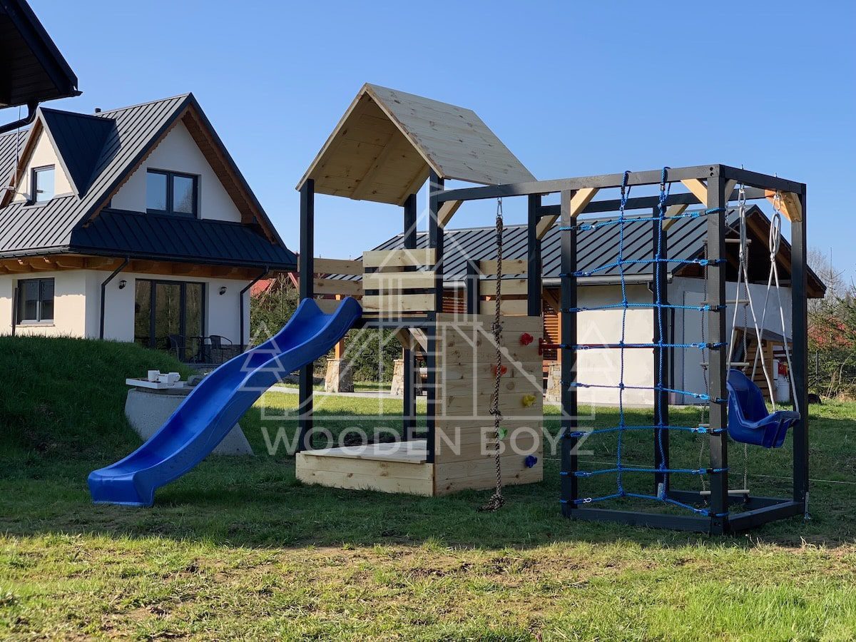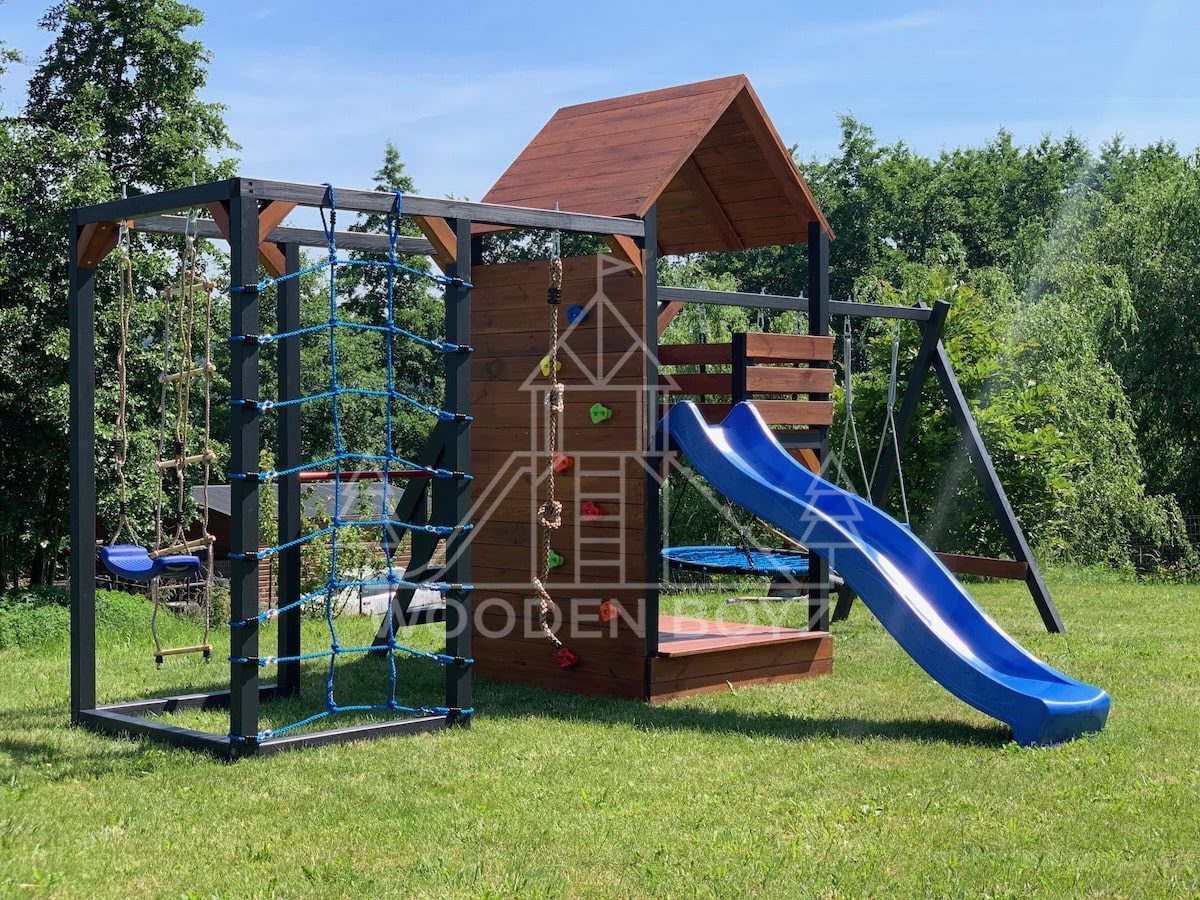 Zosia je funkční a estetické hřiště, které dětem zajistí hodiny nezapomenutelné zábavy a aktivit na čerstvém vzduchu. Bylo navrženo s ohledem na bezpečnost a všestranné možnosti fyzického rozvoje dětí.Hřiště Zosia je jedinečným místem pro hry a fyzickou aktivitu, které promění vaši zahradu v opravdovou říši dětských dobrodružství. Kombinuje opičí hřiště a lezeckou věž a poskytuje malým objevitelům neomezené možnosti zábavy a rozvoje. Je to místo, kde děti mohou bezpečně lézt, houpat se, klouzat a rozvíjet svou fyzickou zdatnost pod dohledem rodičů.
