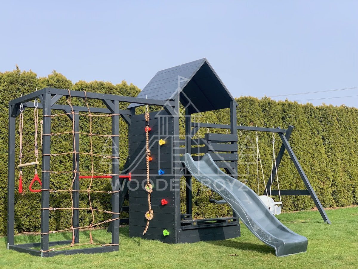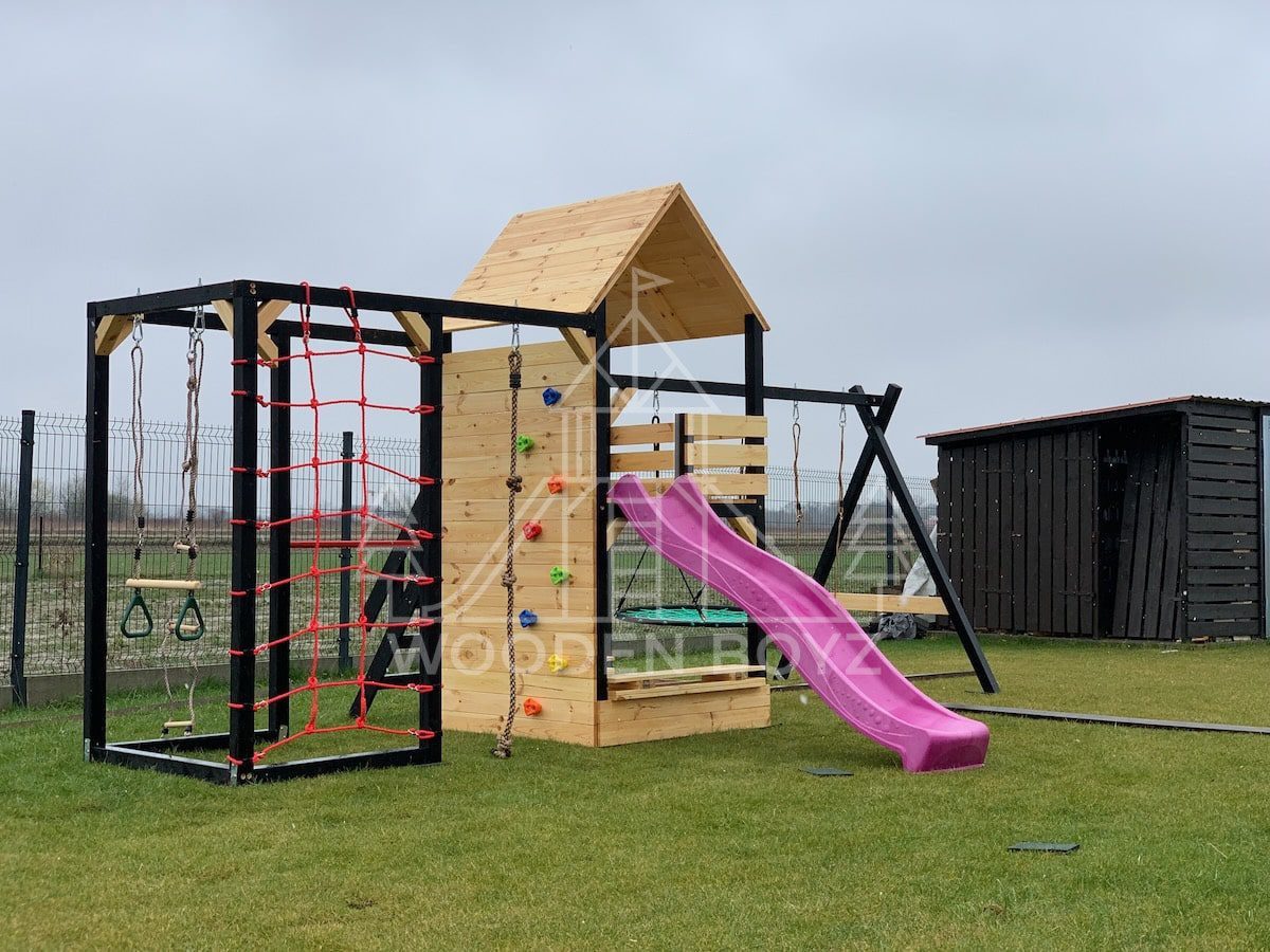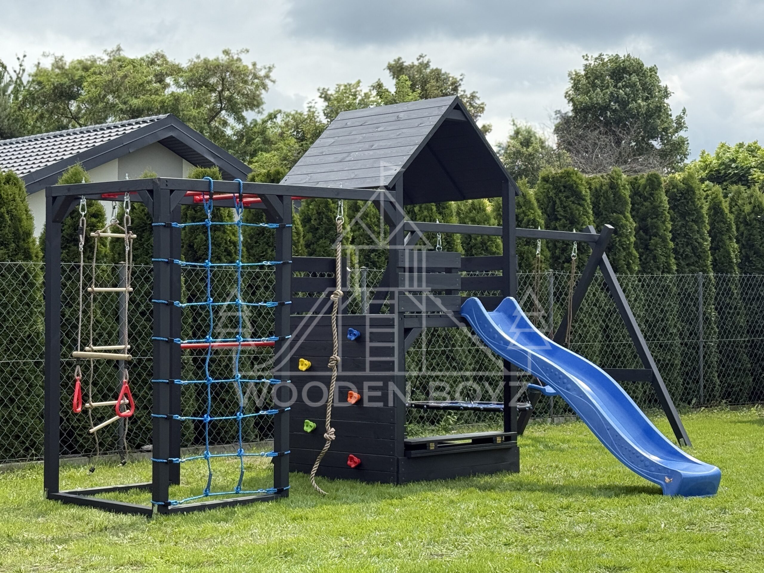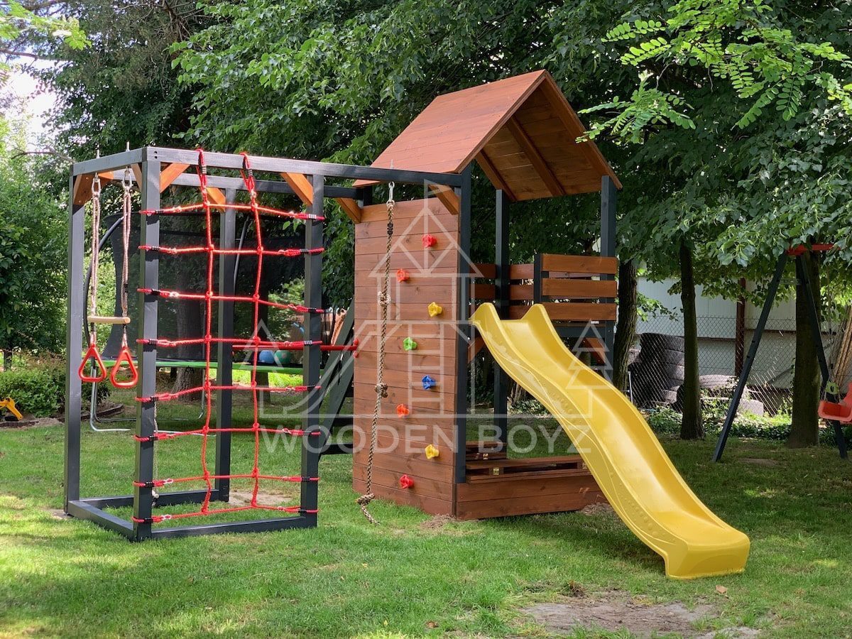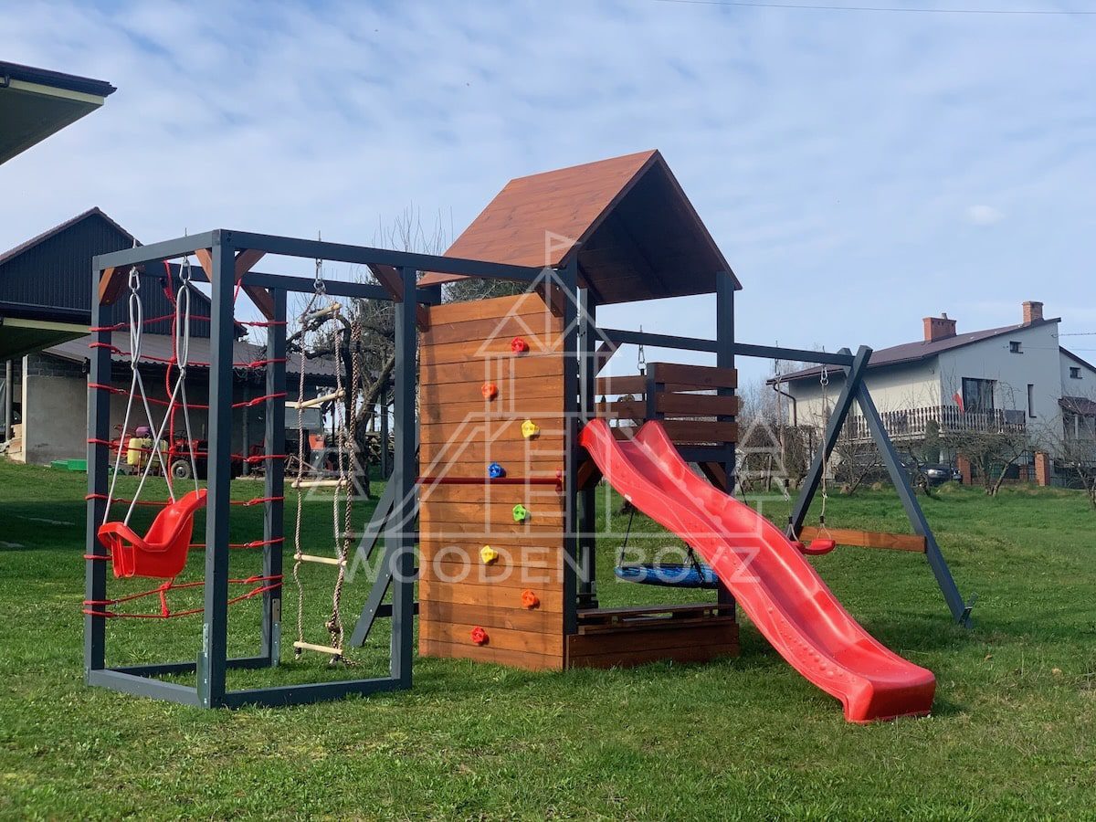Zosia je funkční a estetické hřiště, které dětem zajistí hodiny nezapomenutelné zábavy a aktivit na čerstvém vzduchu. Bylo navrženo s ohledem na bezpečnost a všestranné možnosti fyzického rozvoje dětí.Hřiště Zosia je jedinečným místem pro hry a fyzickou aktivitu, které promění vaši zahradu v opravdovou říši dětských dobrodružství. Kombinuje opičí hřiště a lezeckou věž a poskytuje malým objevitelům neomezené možnosti zábavy a rozvoje. Je to místo, kde děti mohou bezpečně lézt, houpat se, klouzat a rozvíjet svou fyzickou zdatnost pod dohledem rodičů.